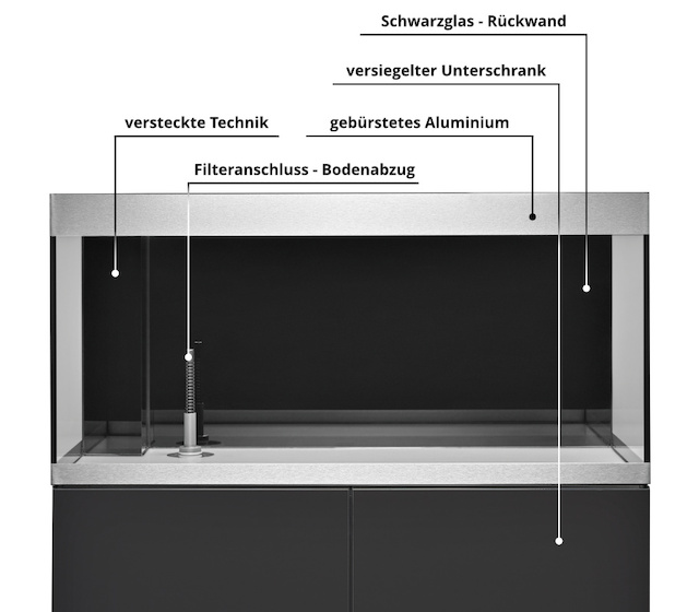Die Rückwand besteht aus schwarz eingefärbten Glas und bildet so den perfekten Abschluss Deiner Unterwasserkomposition.